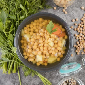 Put the chicken, chickpeas, onion, and garlic in a food processor to combine.