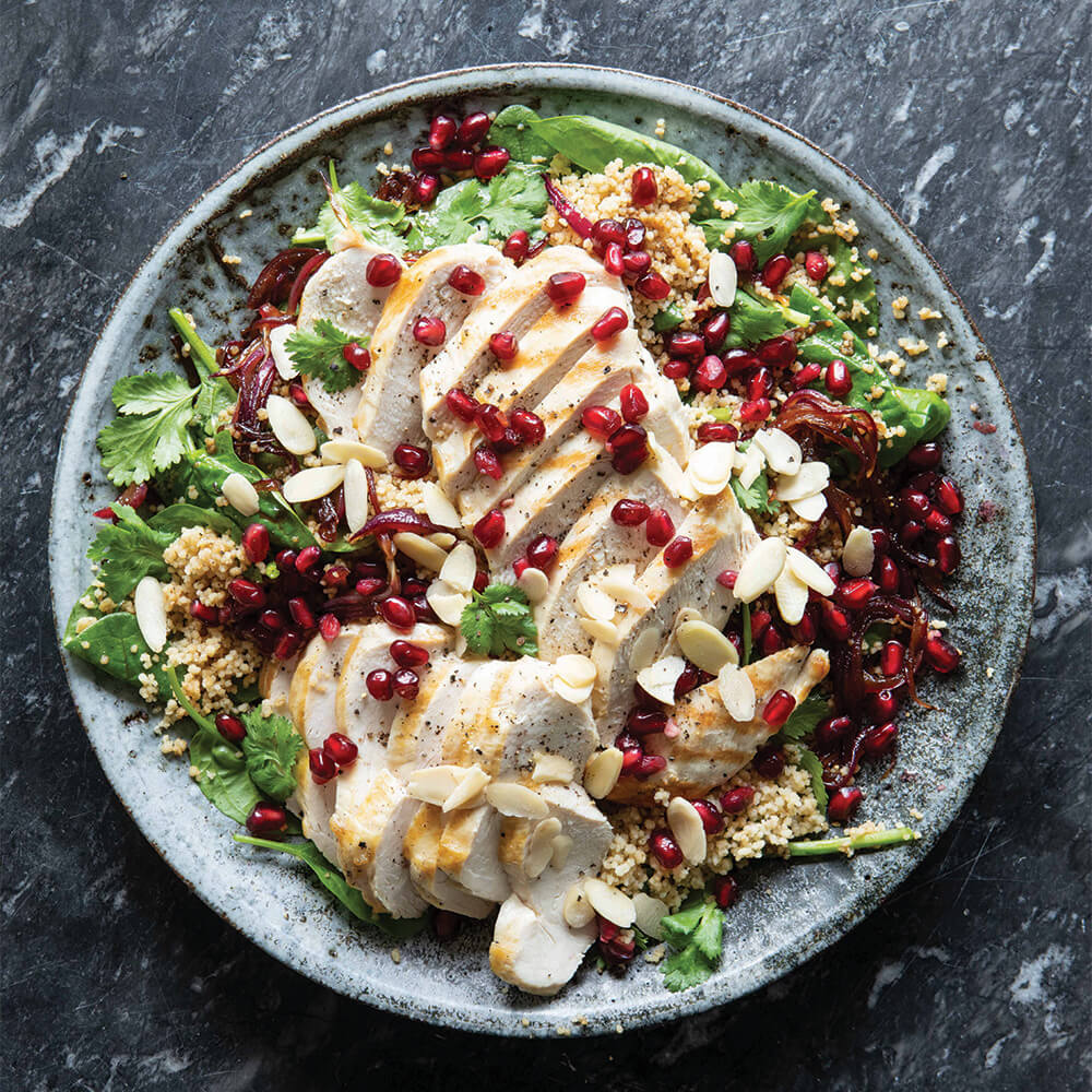Micro-conscious? Salad time! Packed full of vitamins, minerals, and fiber for healthy digestion. The diet staple of chicken breast keeps calories and fats low whilst hitting your protein quota. To lower the carbs, simply decrease your quantity of couscous. There’s nothing more adaptable than a go-to salad savior!