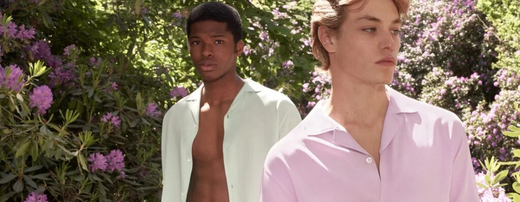 Oli shot his recent campaign during lockdown. The images were designed to teleport people out of their living rooms and show the clothing surrounded by trees, a lake and flowers.