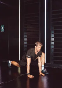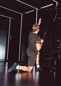 Go down so that you feel a slight amount of stretch in your pecs. Hold there for around 30-40 sec and continuously fight against gravity by pushing with your pecs. Make sure to maintain a good spine position by engaging your core and squeezing your glutes all the time during the hold.