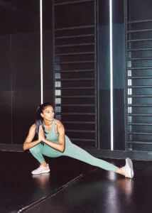 This is a challenging exercise for many, but one that you can benefit greatly from. It opens up the hips and is also good for inner thigh (adductors) mobility. Try to keep a tall spine through the entire movement and don’t lift the heel of the leg your sitting down on off the ground, in order to go deeper into the movement. Alternate from side to side until you have performed 12 reps.