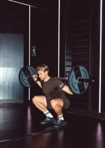 Now it’s time to really get those quads working hard! Place the bar as high on your back as possible to make is easier to maintain an upright torso position. Hit the brakes hard on the negative phase to make sure you are going down in a really slow tempo, aim for a 5 sec count. Go as deep as your mobility allows without losing form. Pause 2 sec at the bottom position then get back up in a faster, but still controlled pace. Try to feel your quads being the boss of the movement. Don’t pause at the top, instead resume the negative phase of the lift again as soon as your legs are almost fully extended. Perform 8-10 reps.