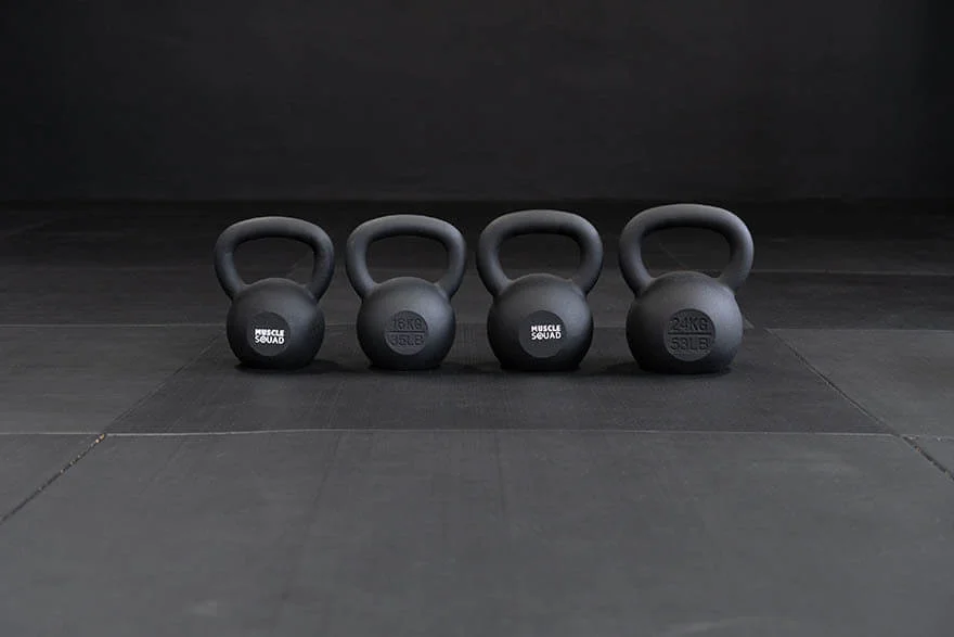 MuscleSquad has different sets of 4x kettlebells available (light, medium, heavy). Made from strong cast iron for indestructible design. Carefully designed, wide-shaped handle for optimised wrist positioning, comfort, and grip.